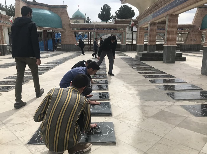 جوانان و نوجوانان هر کدام پای مزاری نشستند و با گلاب ناب محمدی غبارروبی کردند و پس از آن نیز شاخه گلی همراه فاتحه و صلوات، نثار این قبور مطهر کردند.