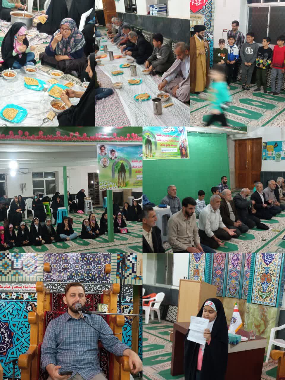 اقامه نماز جماعت مغرب وعشاء، قرائت قرآن، سرود ملی، دعای فرج، مولودی خوانی و اجرای مسابقه و اهدای جایزه از بخش های این جشن است.