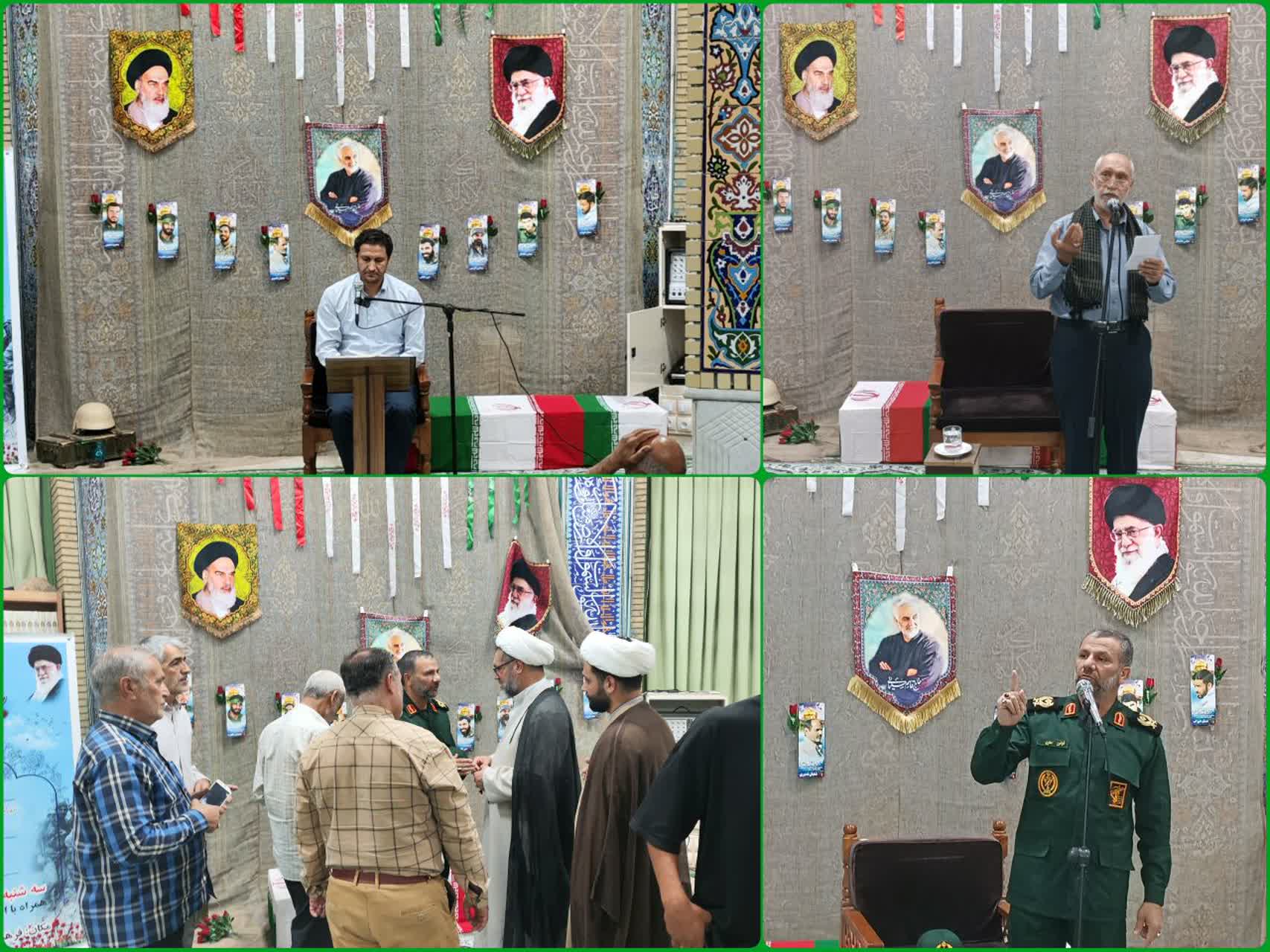 سردار صفری، در پایان با تاکید بر اهمیت آشناکردن نسل جوان با واقعیت های جنگ تحمیلی و ارزش های والای ایثار و شهادت، خاطرنشان کرد: مساجد پس از دوران دفاع مقدس نیز نقش بسیار مهمی در نشر ارزشهای دفاع مقدس، انتقال پیام شهدا و زنده نگه داشتن یاد خاطره آنان به انجام رساندند همین برگزاری یادوارههای شهدا نمونه بارزی از این اقدامات ارزشمند است.