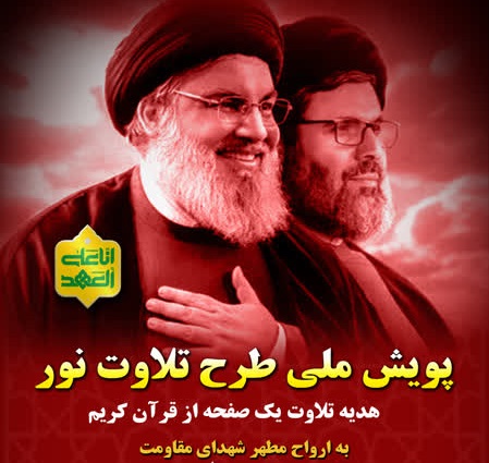 همزمان با روز تشييع و تدفين سيد الشهداي مقاومت شهيد سيد حسن نصرالله و شهيد سيد هاشم صفي الدين پويش طرح ملي طرح تلاوت نور با محوريت اهداء ثواب تلاوت قرآن کريم به روح مطهر شهداي مقاومت در مساجد سراسر کشور برگزار مي شود.